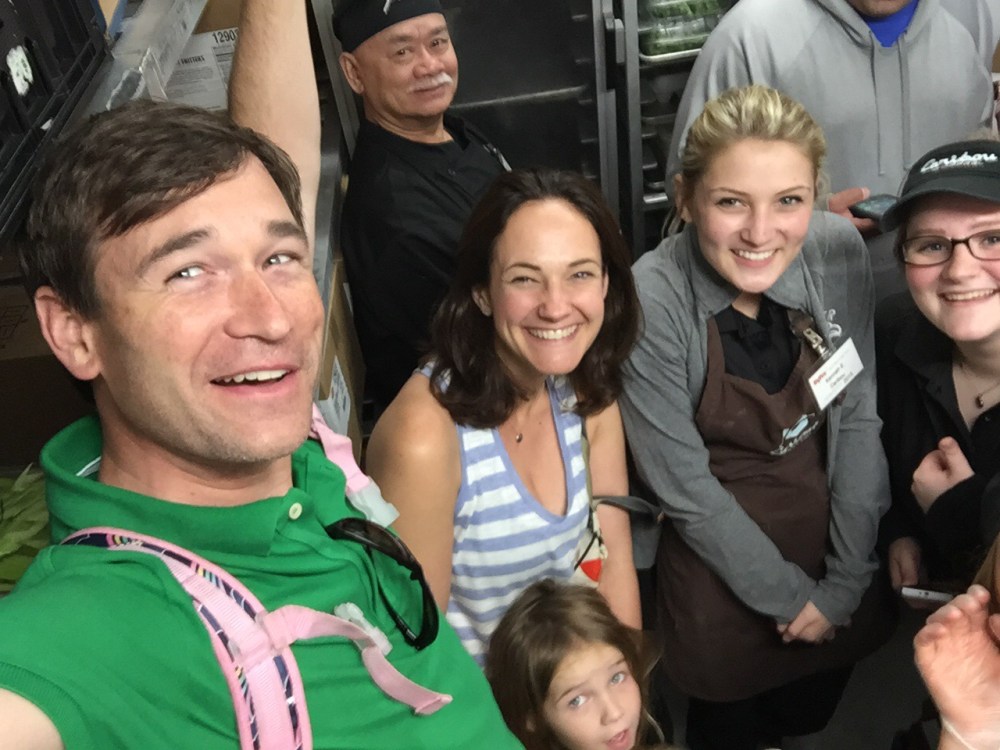 Towles and I herded the children into a 100 square foot cooler, along with the Hy-vee deli and pizza station employees, along with a few members of the sushi station and a few other shoppers. We huddled in the cold as the tornado approached, beneficiaries of this unusual sanctuary and the kindness of strangers who offered their fleeces and sweaters to our shivering kids, and whose light spirits kept Claire, in particular, from completely freaking out.