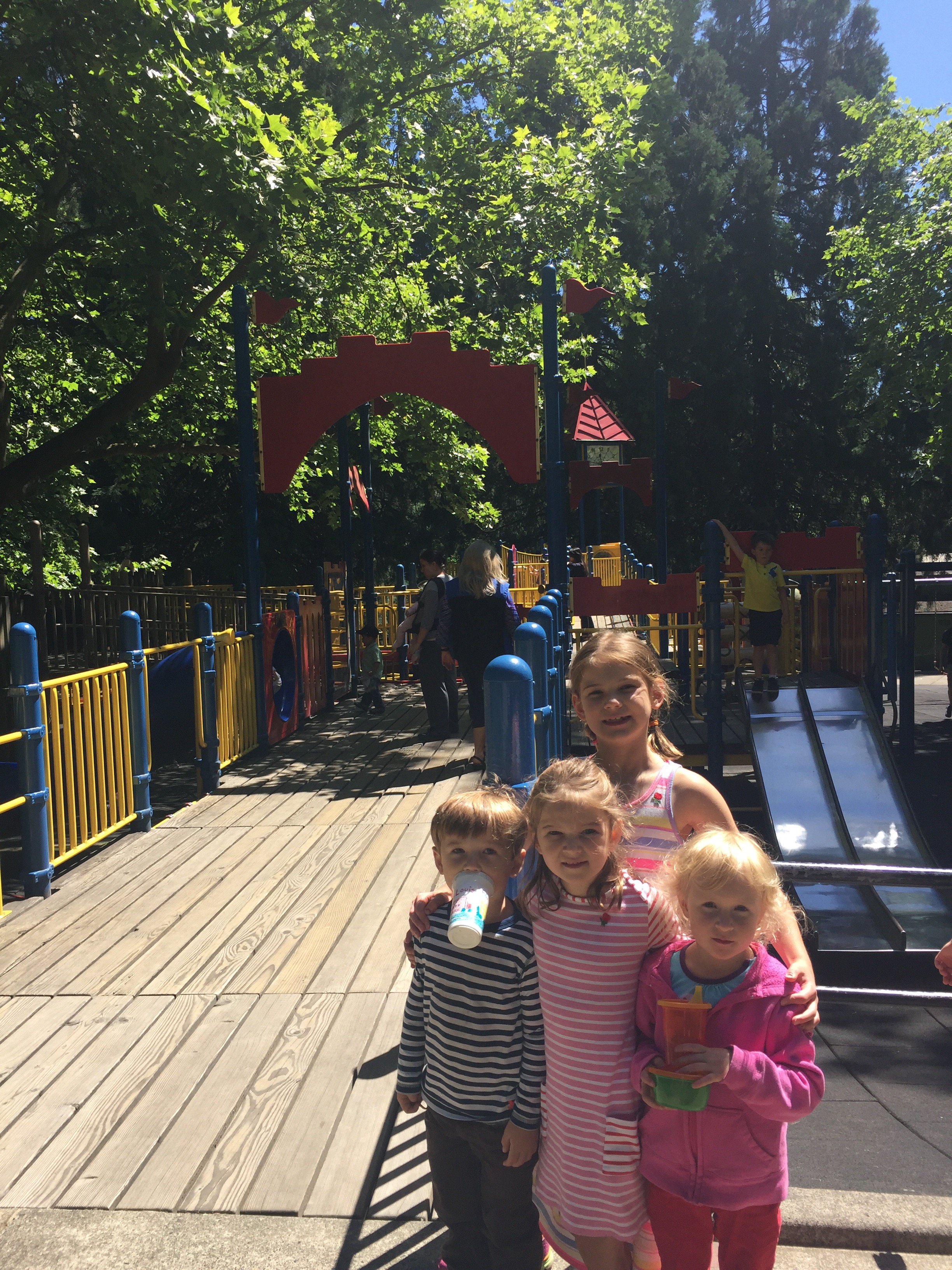 We drove to Portland’s heavily-wooded Washington Park and met Geoffrey, Elise and Towles’ friend from college, Ashley Cartmel, who arrived with her boys, to play on a fantastic playground there.