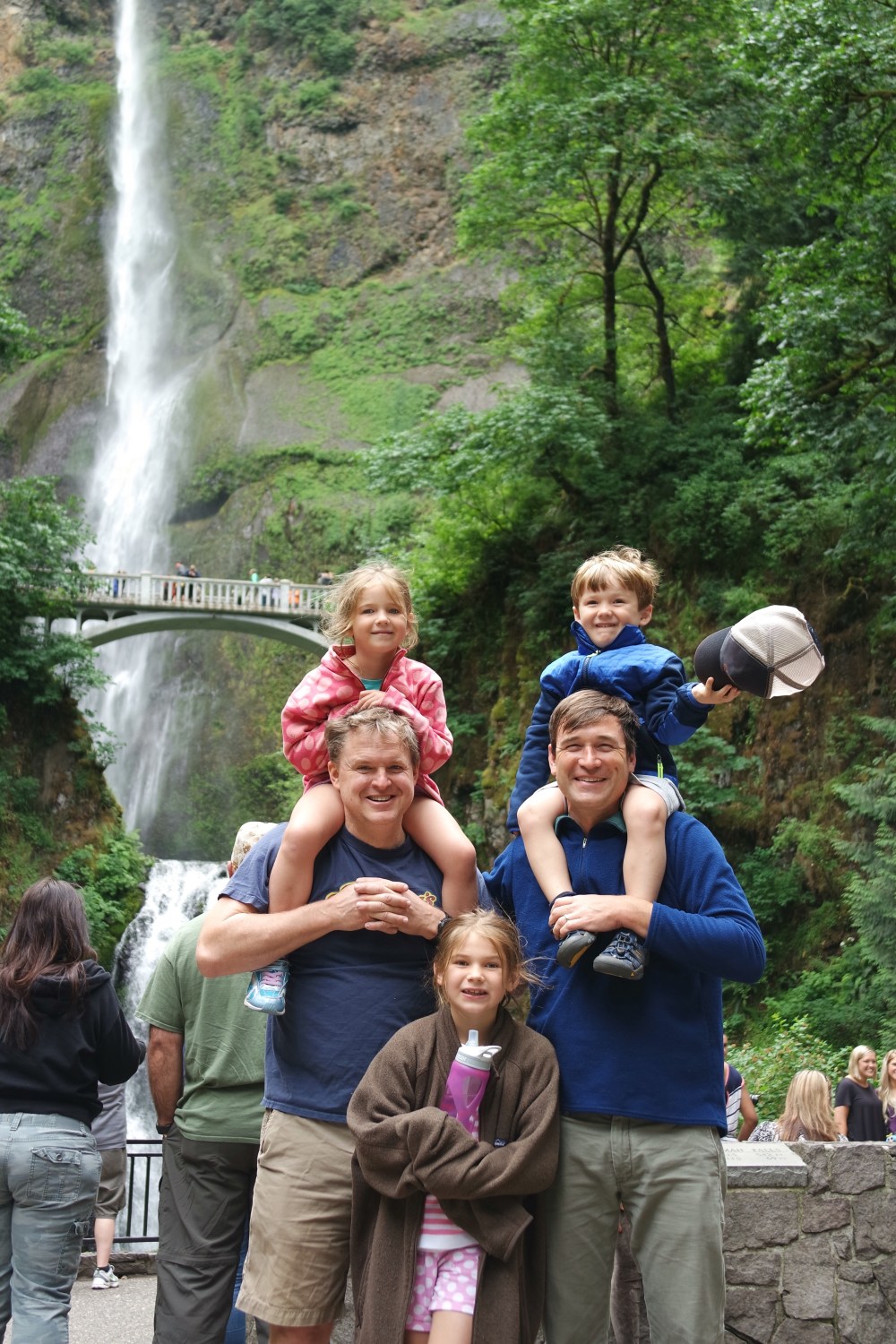We then hiked to the famous arch bridge of Multnomah Falls. There, Geoff, Towles and I rotated carrying Elizabeth and Peter on our shoulders and enjoyed a breathtaking view of the waterfall.