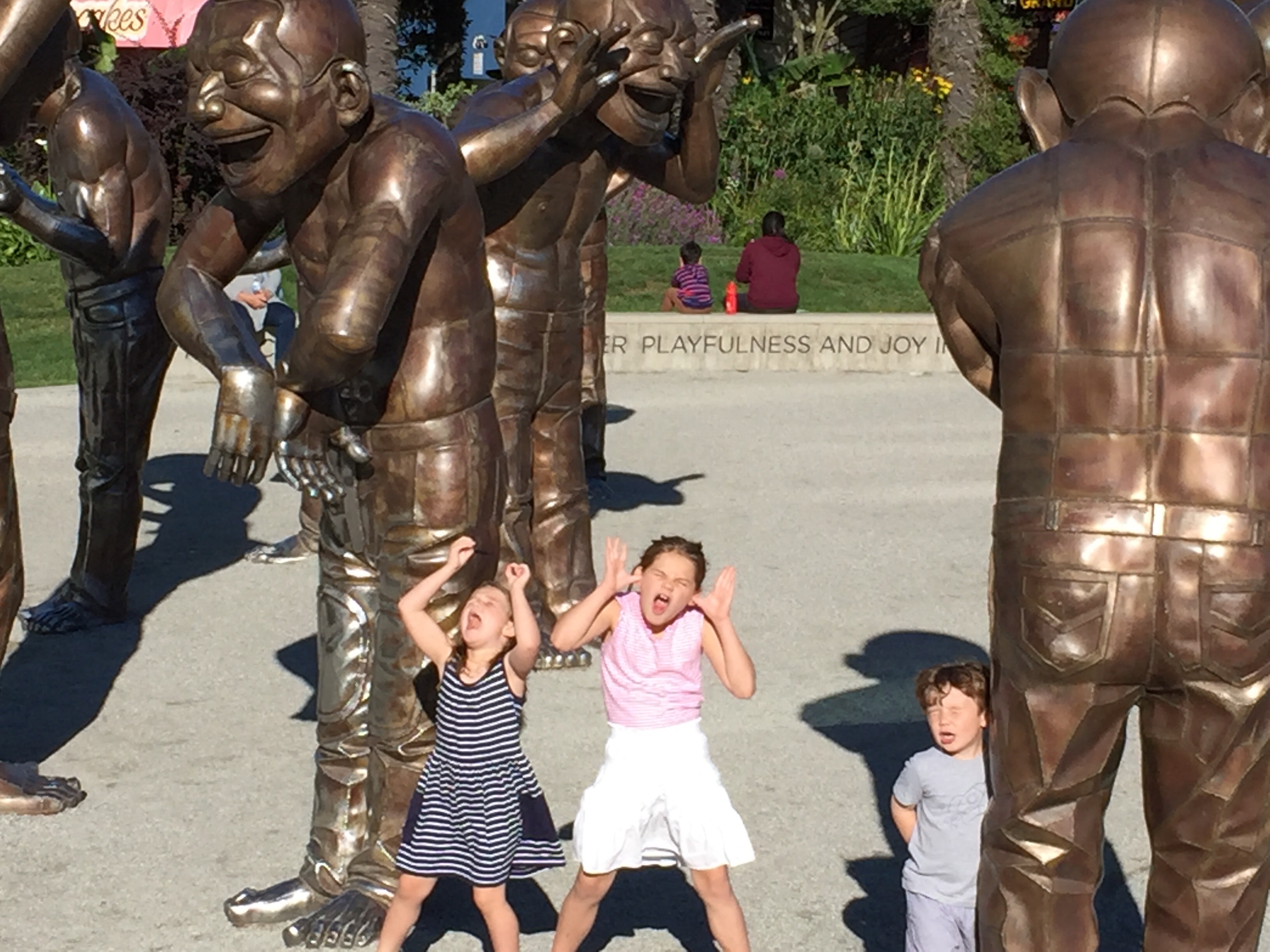 The sun broke through later in the day, and before walking to dinner, Andrew and I watched the kids roll down the grassy knolls bordering the bay, where there were seven massive container ships at harbor.