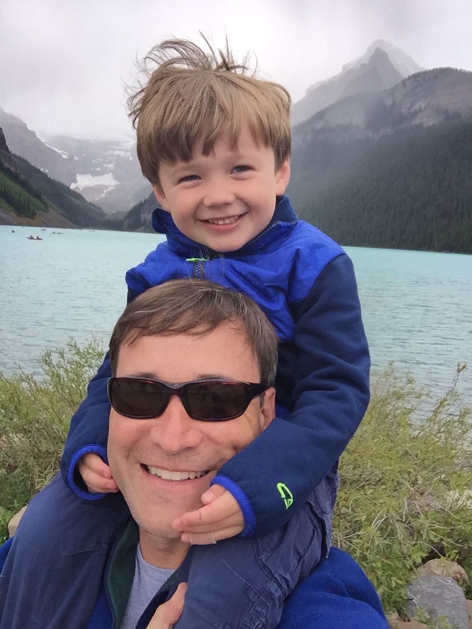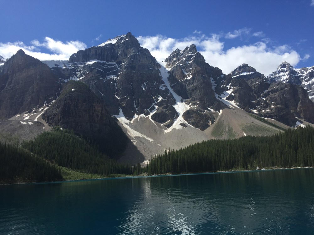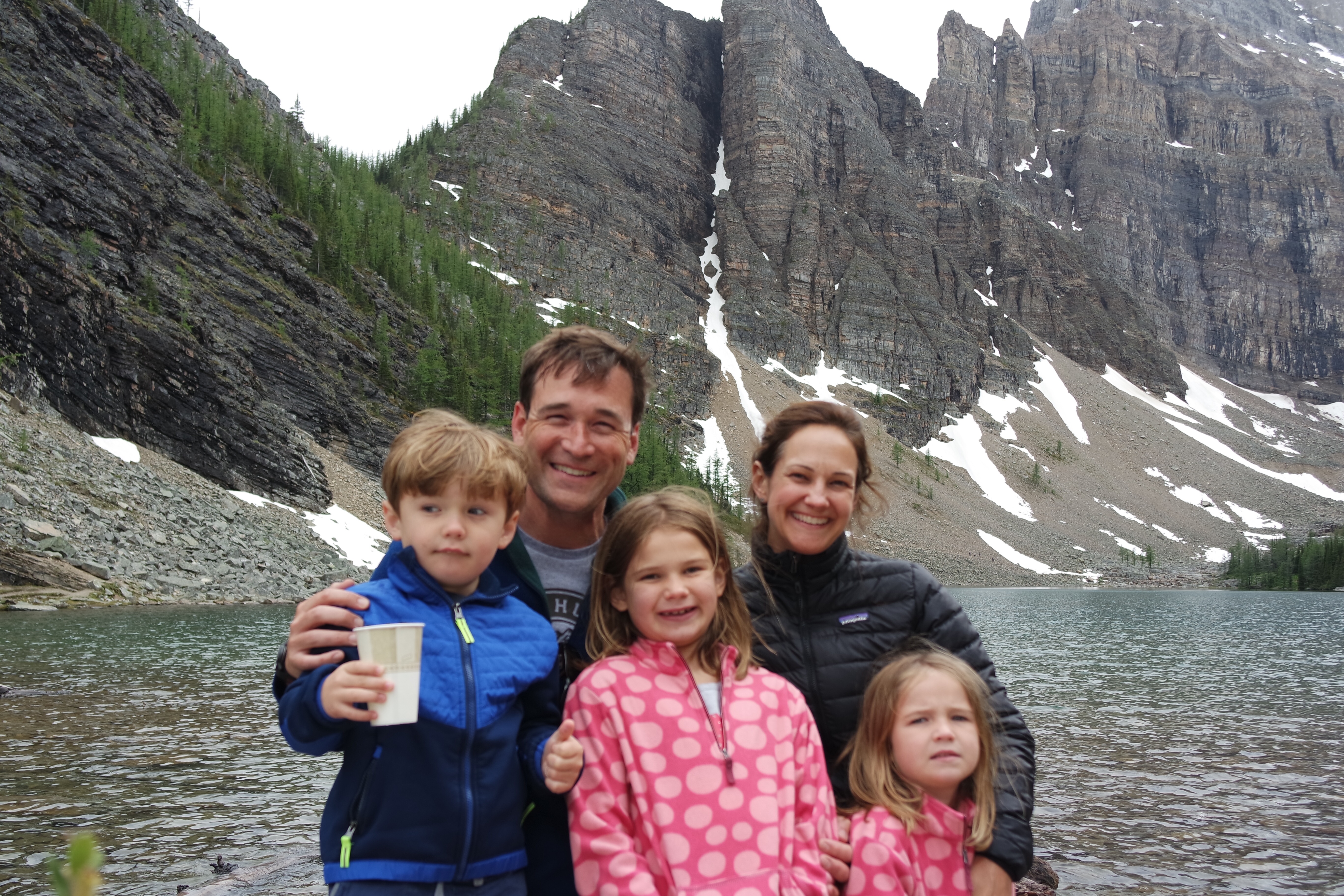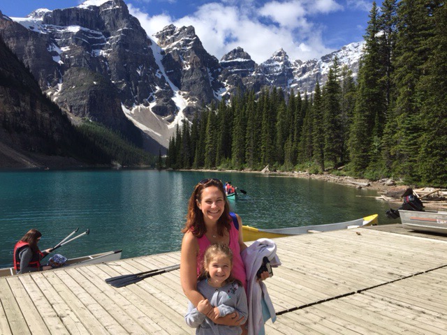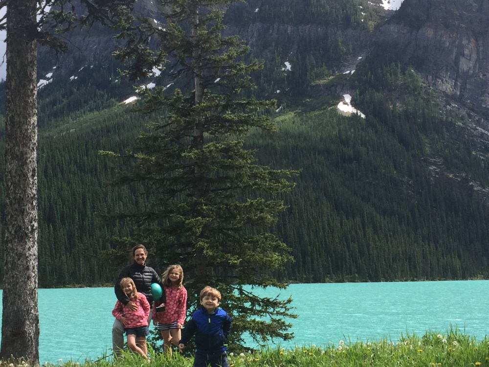 The next day, we promised the kids no hiking and meant it. Instead, we drove to Lake Moraine, west of Lake Louise, and got in two canoes. Andrew was in a boat with Claire and Peter, while Elizabeth and I teamed up.